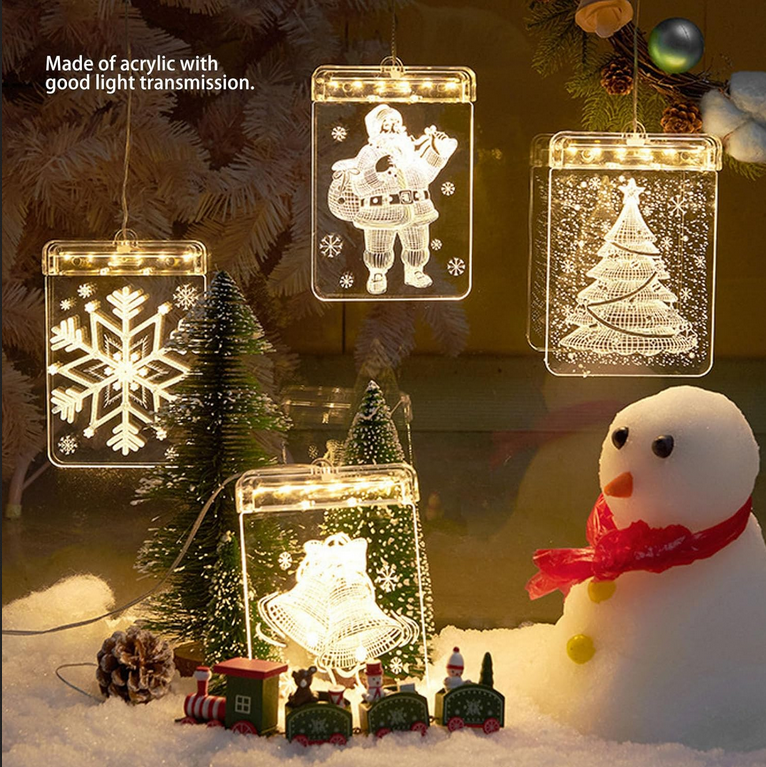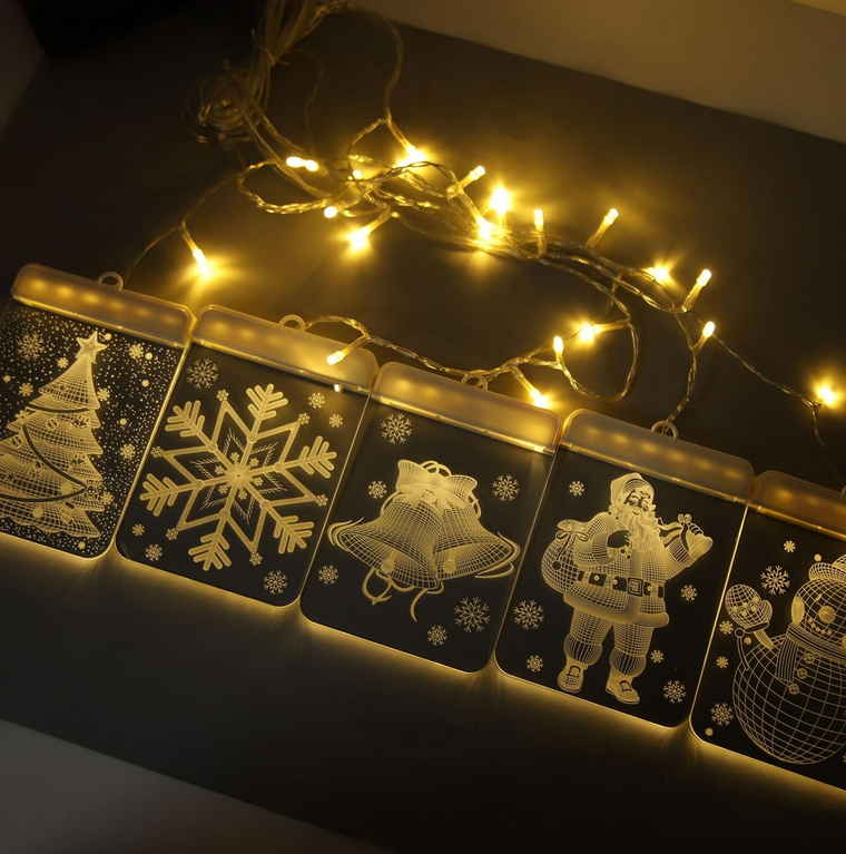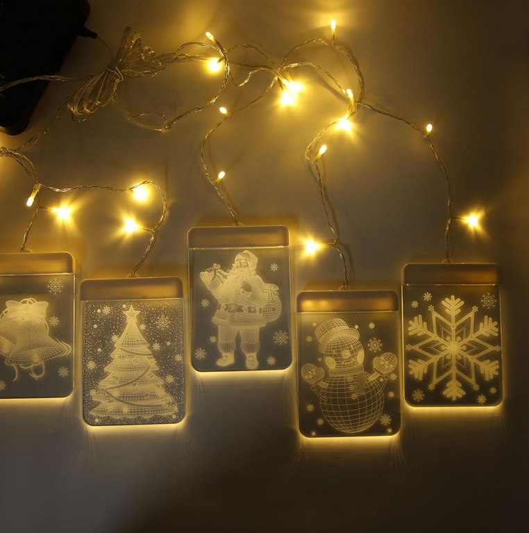 ¿Qué es?: La guirnalda de tarjetas cuenta con ricos patrones navideños grabados en acrílico con alta transmisión de luz para una visualización brillante y vívida.